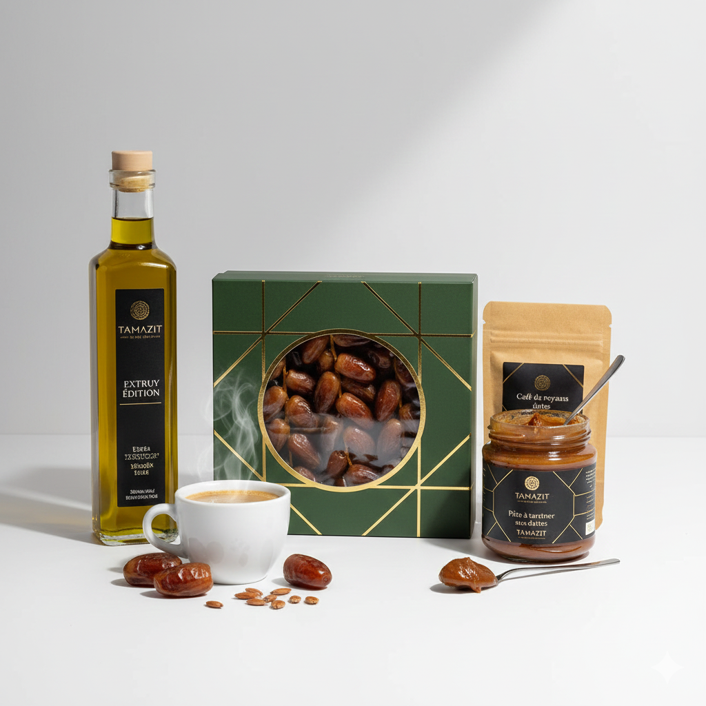 TAMAZIT puise ses racines dans les terres ensoleillées de Tunisie, là où les dattes sont cultivées avec soin depuis des générations. Inspirée par le patrimoine local et le savoir-faire artisanal, notre marque célèbre la richesse naturelle du palmier dattier et transforme ses fruits en créations authentiques et gourmandes, alliant tradition et modernité