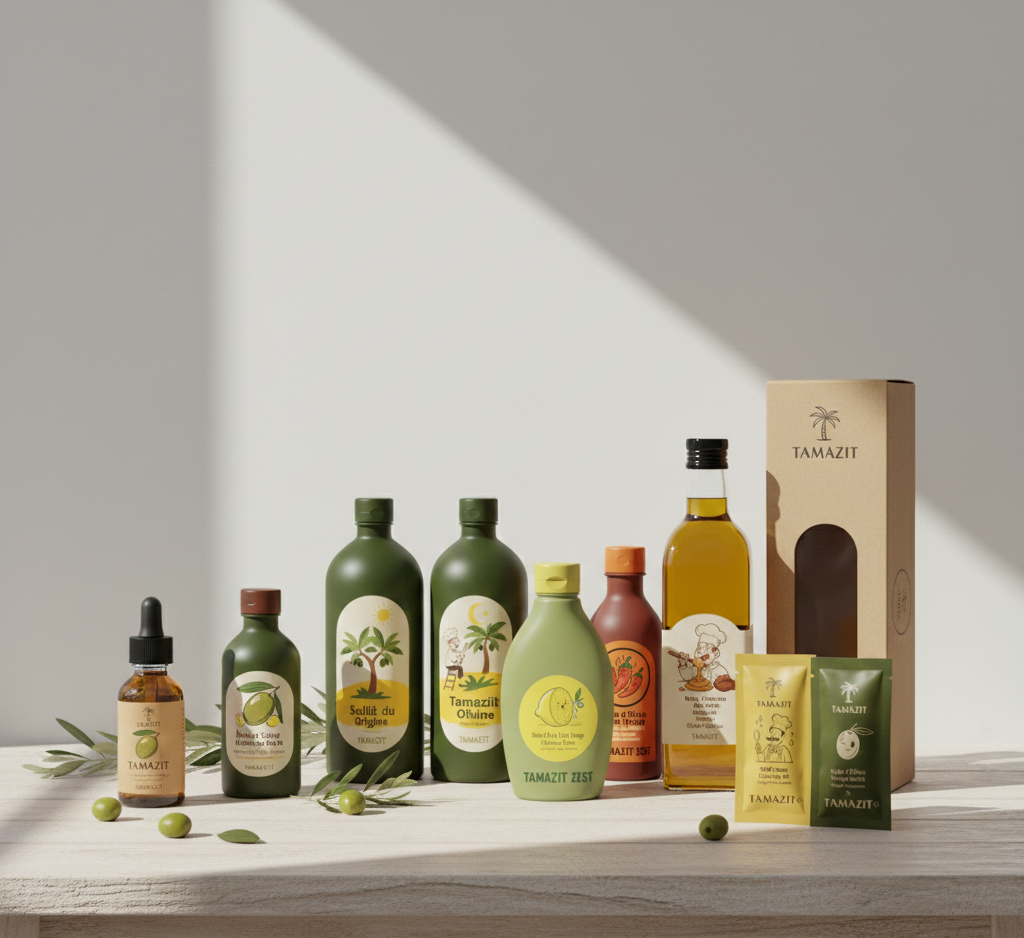 Découvrez une collection raffinée, issue de la richesse du terroir tunisien. Chaque bouteille et sachet est une invitation à savourer l'excellence, l'authenticité et l'innovation de notre huile d'olive vierge extra. De la cuisine quotidienne aux saveurs infusées, TAMAZIT sublime vos plats et éveille vos sens.